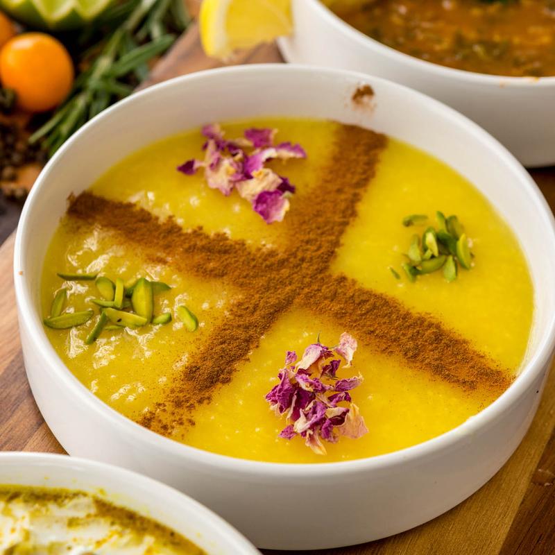 Herbs, pinto beans, lentils, peas, noodle and kashk.