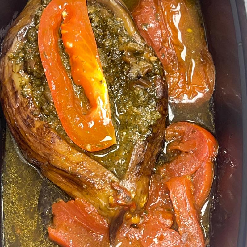Grilled eggplant mixed with sauteed onions, fresh tomatoes, Garlic & Egg